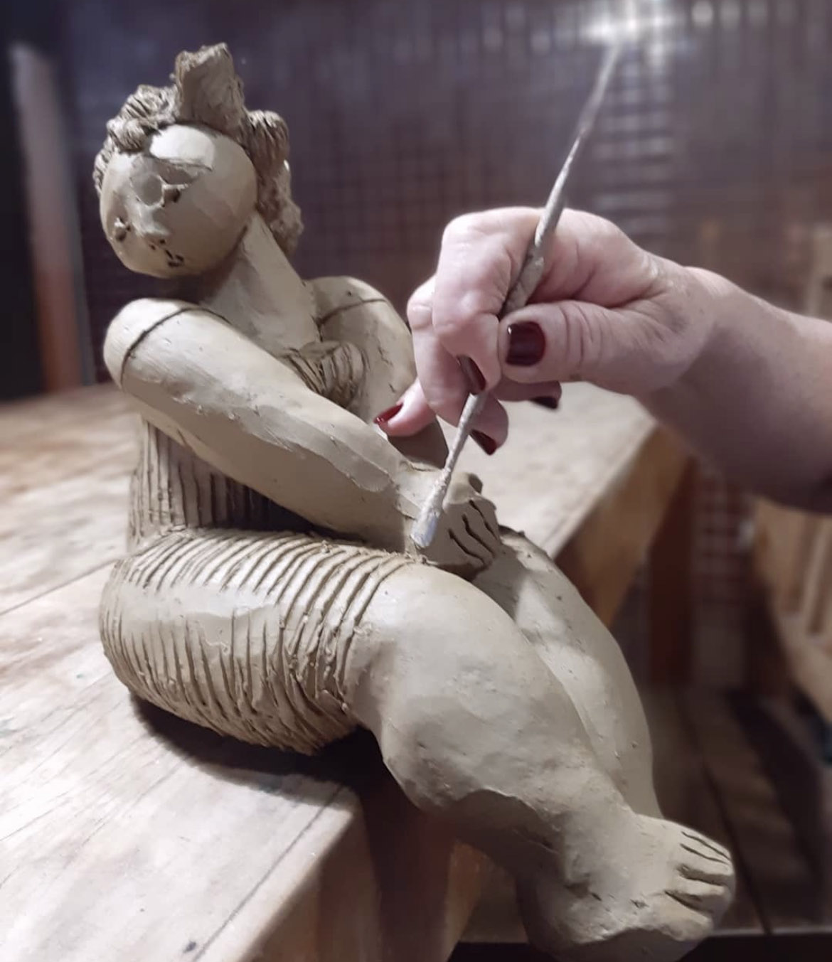 Elisa dedica um tempo significativo para esculpir e moldar cada peça, demonstrando cuidado e dedicação em cada detalhe.